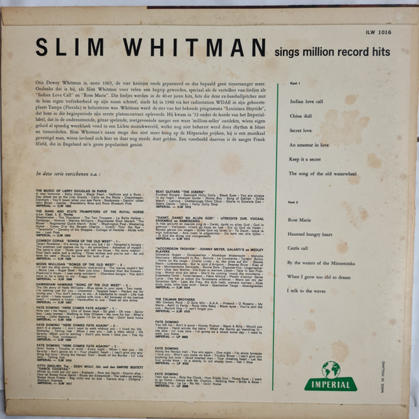 Slim Whitman – Slim Whitman Sings Million Record Hits (VINYL)