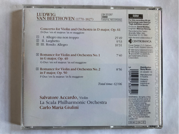 Beethoven*, La Scala Philharmonic Orchestra*, Salvatore Accardo, Carlo Maria Giulini – Violin Concerto / Romances For Violin And Orchestra (CD)